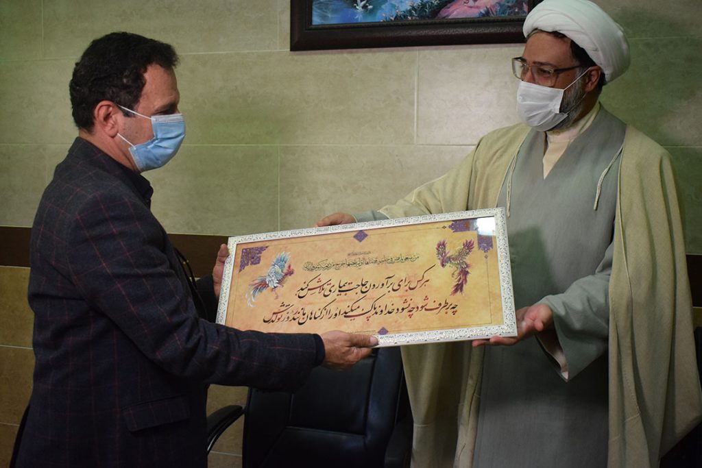 حجتالاسلام طاهری و هیئت همراه در ابتدای این مراسم ضمن دیدار با دکتر ادبی، رئیس بیمارستان حضرت قائم (عجلالله تعالی فرجهالشریف) با اهدای پوستری با محتوای روایتی از پیامبر اکرم صلوات الله علیه در مورد مقام شامخ پرستار و شاخه گل از وی تقدیر کرد.
