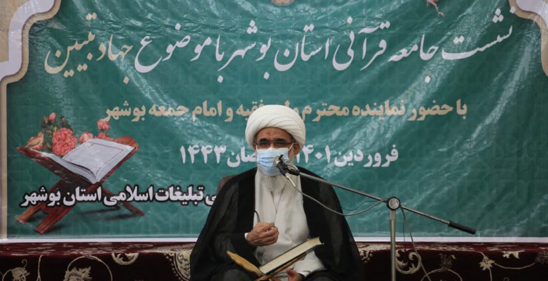 به گزارش روابط عمومی اداره کل تبلیغات اسلامی بوشهر، نشست جامعه قرآنی استان بوشهر با موضوع جهاد تبیین، با حضور آیتالله صفایی بوشهری، نماینده ولی فقیه در استان و امام جمعه بوشهر، حجتالاسلام محمدرضا اسماعیلپور مدیرکل اداره اوقاف و امور خیریه بوشهر، مهدی حیدری سرپرست صدا و سیمای مرکز بوشهر، حجتالاسلام محمد قادری معاون فرهنگی، پژوهشی و آموزشی اداره کل تبلیغات اسلامی، مقامات استانی و فعالان قرآنی استان ۲۸ فروردین 1401 در مصلای جمعه این شهر برگزار شد.
