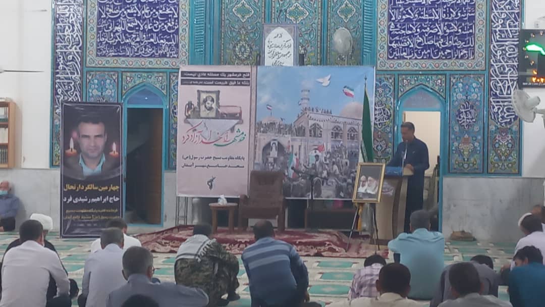 مراسم ویژه سوم خرداد(آزاد سازی خرمشهر) با حضور مسئولین شهرستان دیر و قشرهای مختلف مردم در مسجد جامعه شهر آبدان برگزارگردید.