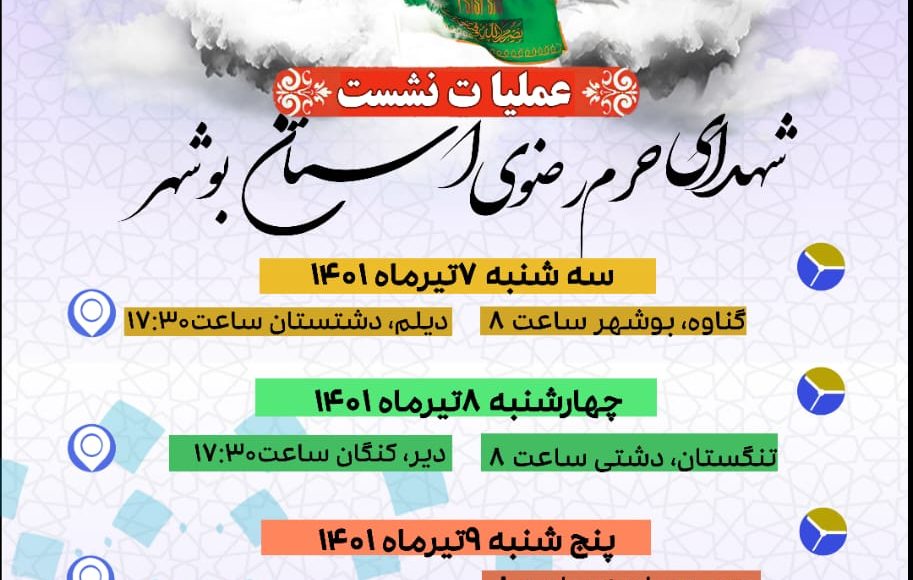 عملیات نشست شهدای حرم رضوی در 10 نقطه استان بوشهر برگزار شد