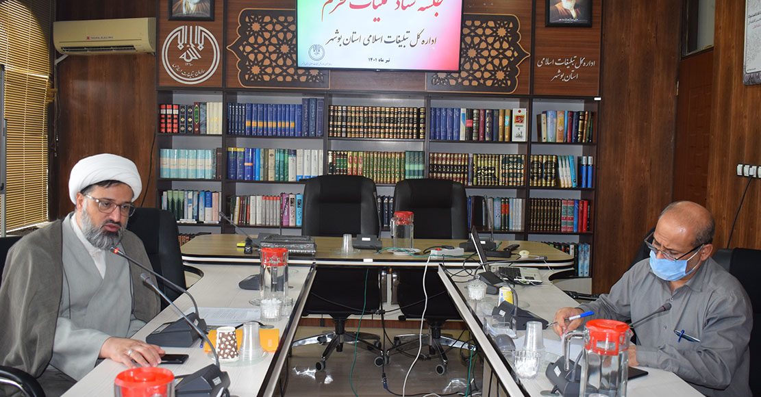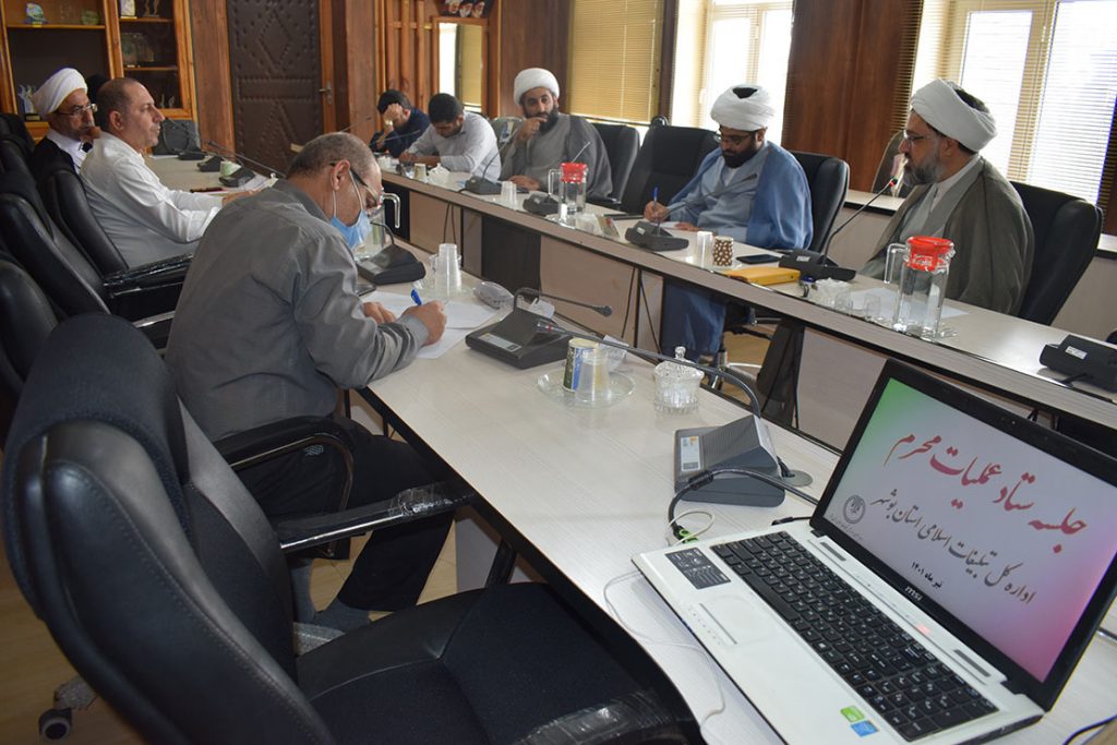 احیاء مجالس حضوری هیئات مذهبی، ضرورت ایجاد ارتباط با مجمع طلاب بوشهر در قم، اصفهان و مشهد، احیاء روضههای خانگی، ضرورت برگزاری همایشهای ویژه هیئات مذهبی و شبکه تبلیغ، تهیه نقشه راه برای فرایند عملیات سوم، برگزاری طرح دوره آموزشی دو ساله مبلغین و مبلغات استان و ایجاد کارگروههای تخصصی در سازمان جهت سازماندهی عملیات محرم در حوزههای مختلف از مواردی بود که در این جلسه مورد بحث و بررسی قرار گرفت.