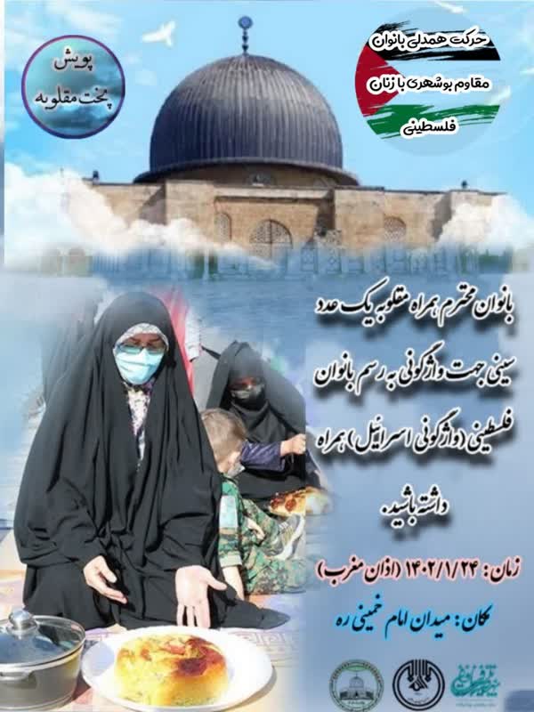 به گزارش روابط عمومی اداره کل تبلیغات اسلامی بوشهر، مائده پیامی اظهار داشت: در آستانه روز جهانی قدس، حرکت همدلی بانوان مقاوم بوشهری با زنان فلسطینی در قالب پویش پخت مقلوبه در بوشهر انجام شد.