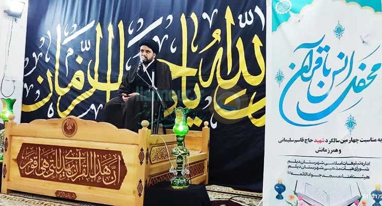 محفل انس با قرآن کریم بمناسبت چهارمین سالگردشهید سلیمانی در دیلم برگزار شد