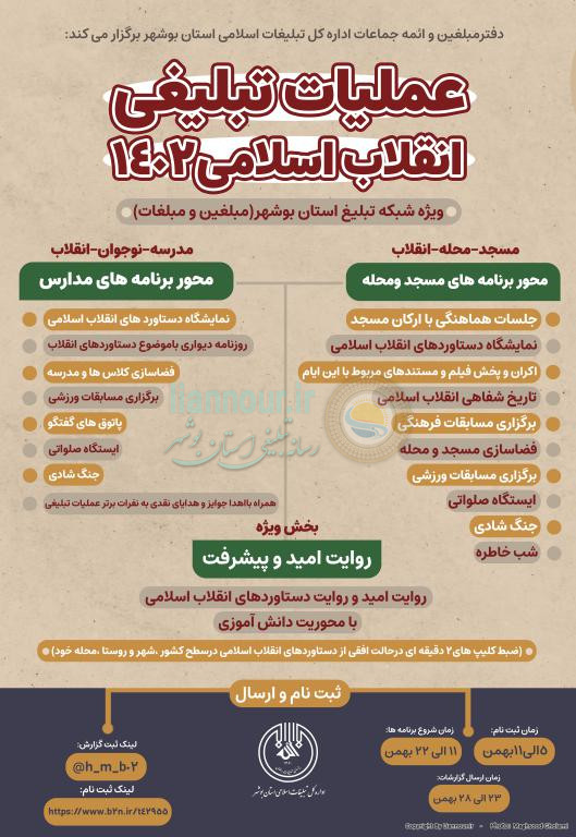 ثبتنام عملیات تبلیغی انقلاب اسلامی 1402 ویژه شبکه تبلیغ استان بوشهر