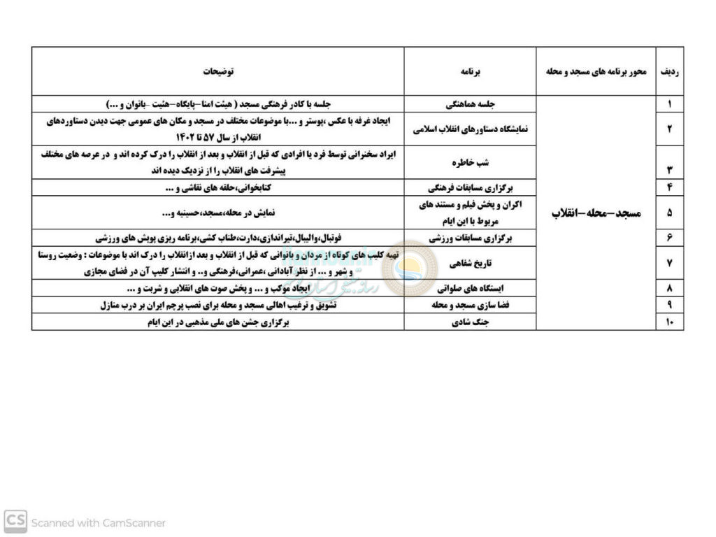 وی ادامه داد: این عملیات در قالب سه برنامه در سطح مساجد و محله، مدارس و بخش ویژه برگزار میشود.