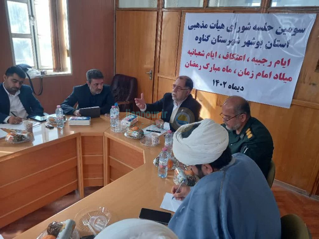 به گزارش روابط عمومی اداره کل تبلیغات اسلامی بوشهر، این نشست 27 دی 1402 با حضور محمدتقی صفری فرماندار گناوه، حجتالاسلام حسن صادقزاده سرپرست معاونت فرهنگی پژوهشی و آموزشی تبلیغات اسلامی بوشهر، نوشاد نوشادی رئیس، و اعضای این شورا در گناوه برگزار شد.