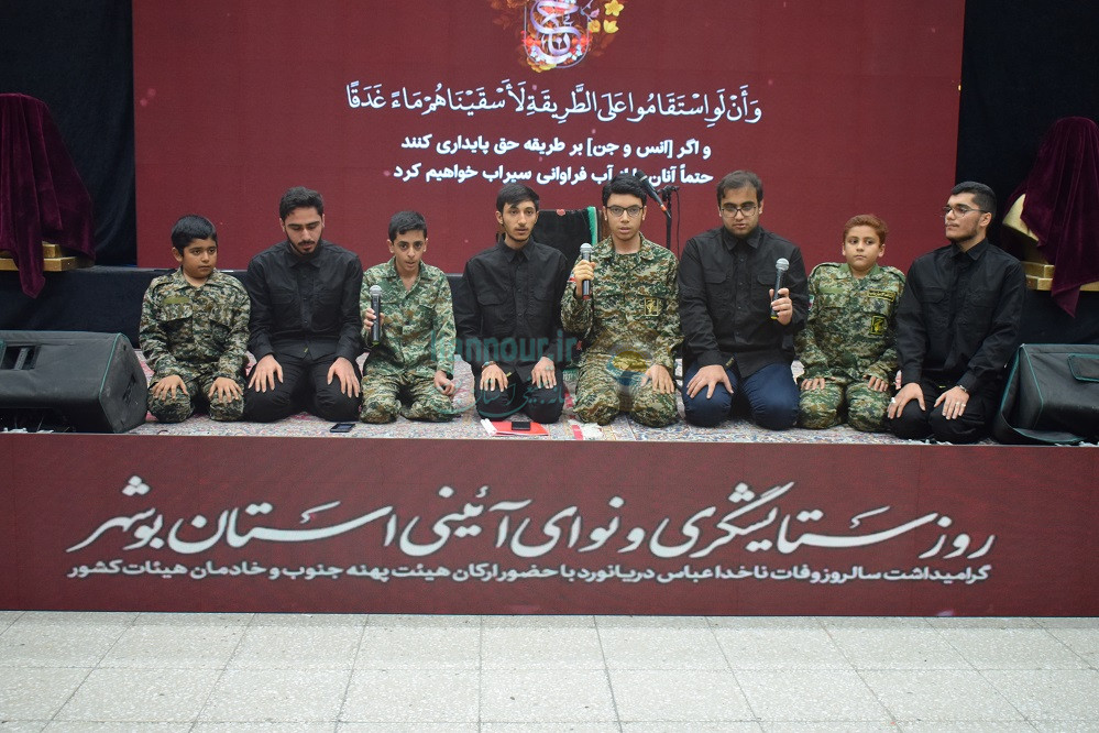 گفتنی است، این مراسم به مناسبت گرامیداشت سالروز وفات ناخدا عباس دریانورد و همزمان با روز ستایشگری و نوای آئینی استان بوشهر و با حضور ارکان هیئت پهنه جنوب و خادمان هیئات کشور برگزار شد.